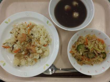 ちらしずし・牛乳・春雨のあえもの・白玉しるこ