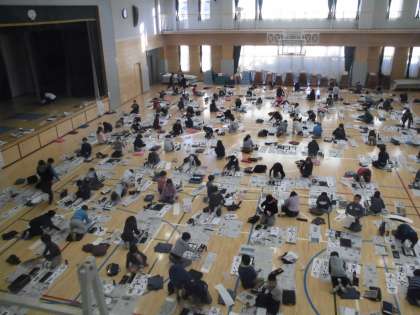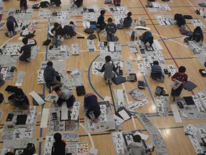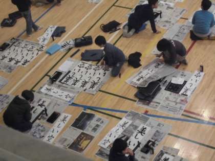 今までの練習の成果を発揮し、手本をよく見て、それぞれの作品を書き上げていました。