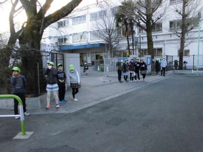 あいさつ隊の子どもたちが今日も朝の声掛けをしています。