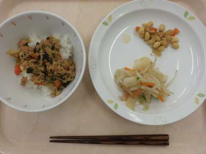 ぎょうざ丼・牛乳・しもつかれ・かんぴょうサラダ