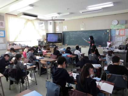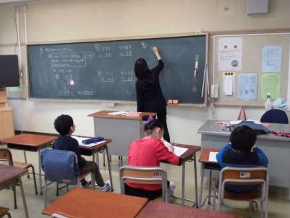 2けたのかけ算の学習をしている3年生・・