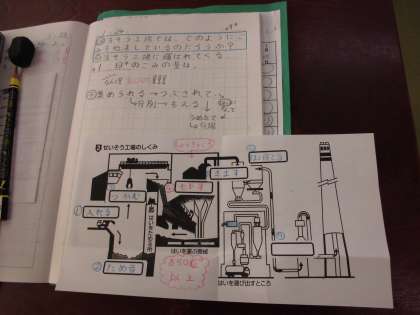 清掃工場の仕組みについて学習している4年生・・・