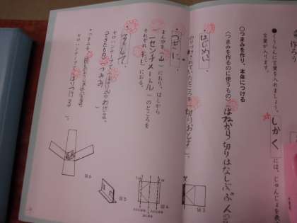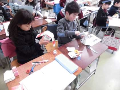 事柄の順序をあらわす言葉に気を付けながら、説明文に沿って組み立て作業をしていました。