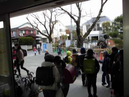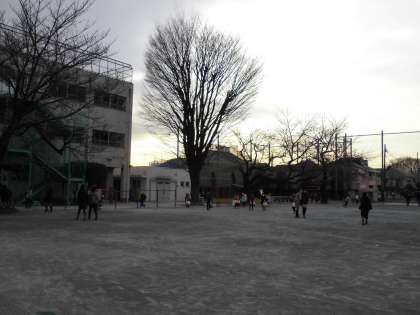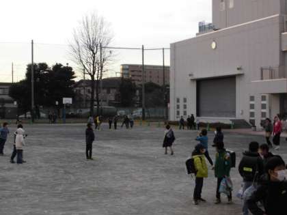 曇り空の広がる校庭ですが、登校してきていつものようにお気に入りの場所でそれぞれ過ごしています。