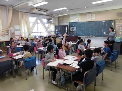 国語で学習したゲームのやり方に沿って、出題者の決めたものを、当てるゲームが始まりました。