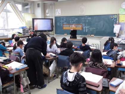 ゲストティチャーをお迎えして、そろばんのおけいこです。