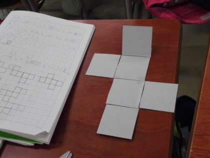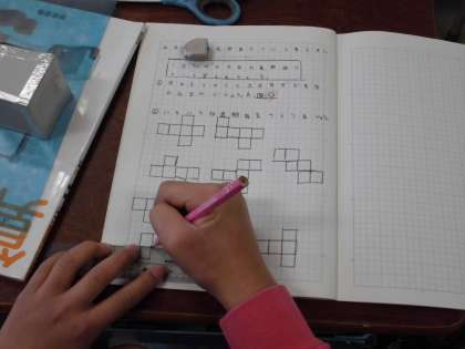 組み立てると立方体になる展開図を考える学習です。