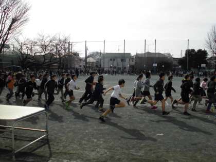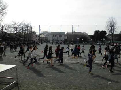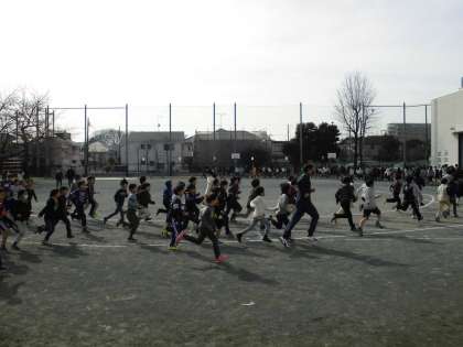 体力向上に向けて、一定の時間、無理のない速さで走る持久走タイムがスタートしました〜