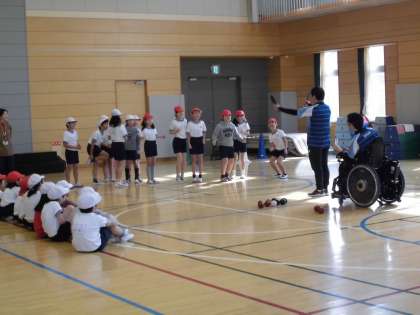 日本ボッチャ協会強化指定選手であるゲストティーチャーの方をお招きしてのボッチャ協議体験です。