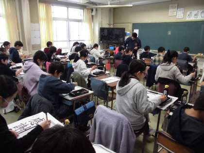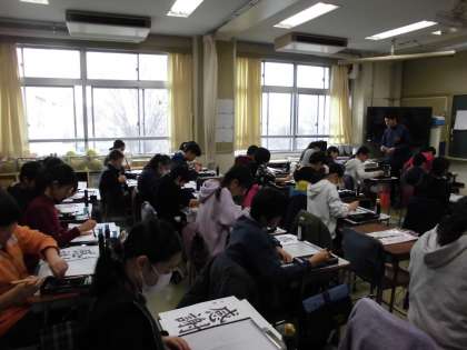 手本をよく見て、とめ、はらいなどしっかり練習中です・・・