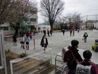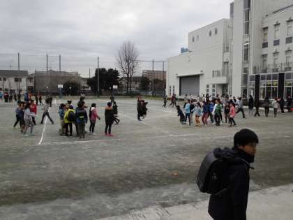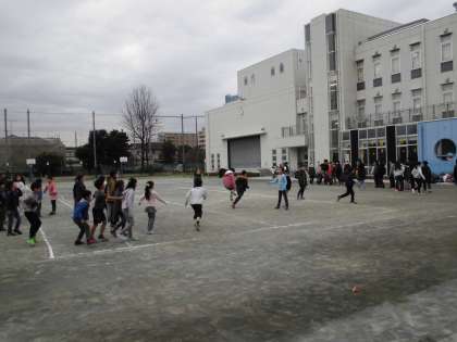 子どもたちと一緒に、朝、長縄をまわしていました。