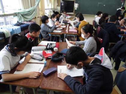 聞く、話すに加えて書く活動も・・・