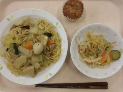 五目あんかけ焼きそば・牛乳・中華サラダ・おからマフィン