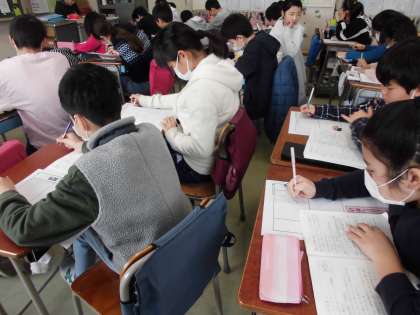 調べた情報を手がかりに、新聞にまとめる学習です。