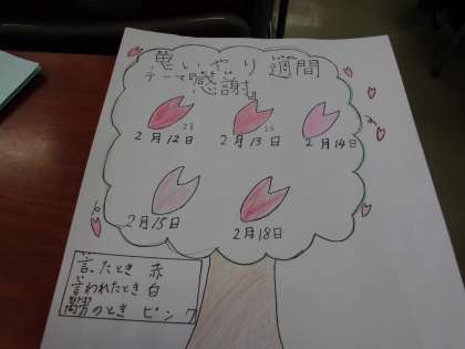今回の思いやり週間では、「ありがとう」の言葉を伝え合う活動に取り組みました。