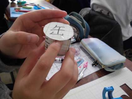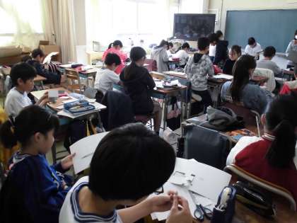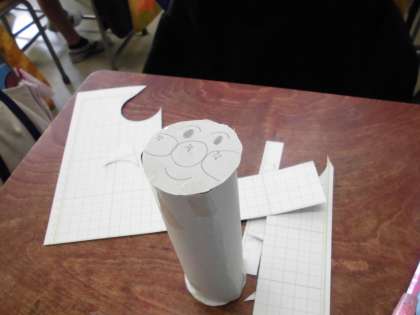 習熟度別指導です。学習した円柱の展開図をかき、組み立てていました。