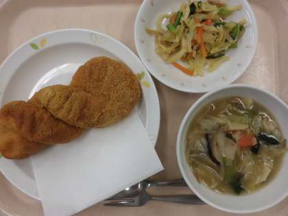 きなこあげパン・牛乳・ワンタンスープ・小松菜サラダ