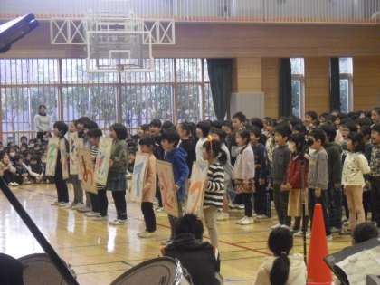 各学年のありがとうの気持ちの後は、児童会の引継ぎ・・・