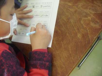 今日は簡単な単語を練習して、決まりを使ってわからない単語もよんでみるという発音の練習をしていました。