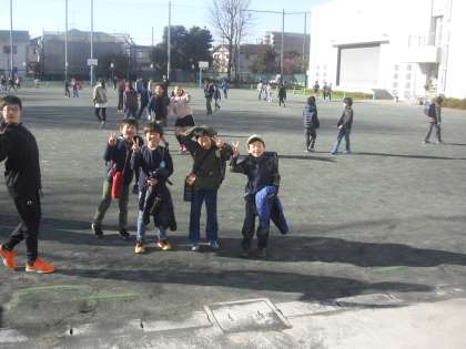 いつものように校庭での子どもたちの様子を伝えようとしたら、子どもたちが集まってきましたよ〜