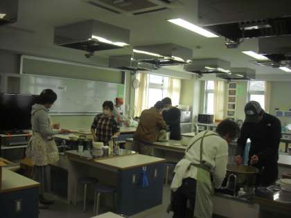 家庭科室では、さっそく帰校に向け、温かい軽食準備も始まりました。