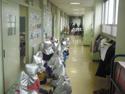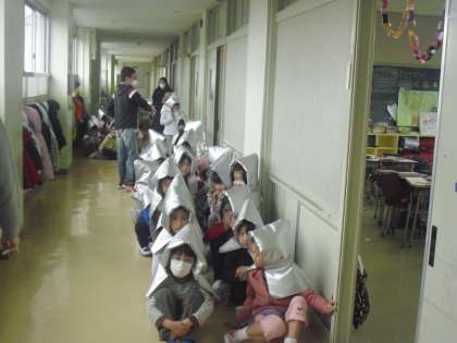 今日も緊急地震速報を流し、地震が起こったという想定で避難訓練をしました。