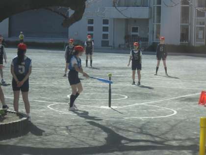 校庭ではベースボール型ゲームの試合が始まりました〜