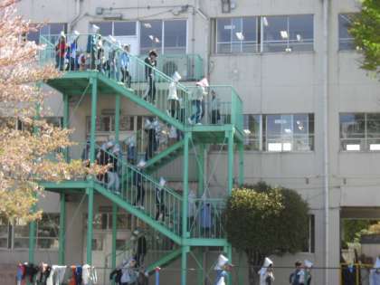 授業中に火災が発生したとの想定で、今年度第1回目の避難訓練を行いました。