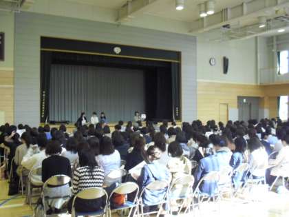 今日は新年度の保護者会(4〜6年)でした。まず体育館で全体会を開きました。