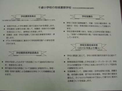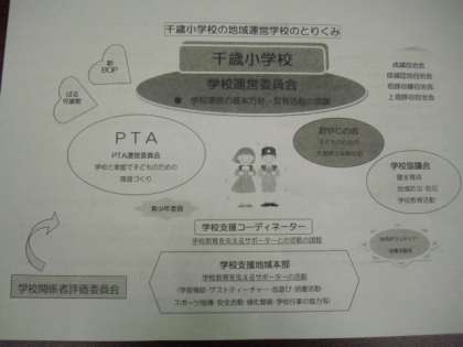 学校運営委員からは、千歳小の地域運営学校について、本年度より、導入される学校支援地域本部の役割と担当者を紹介しました。