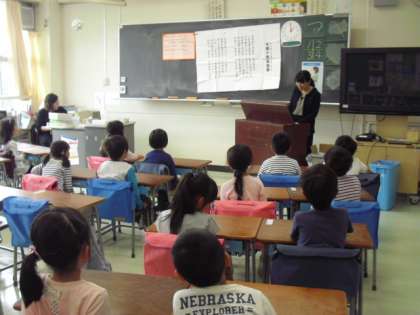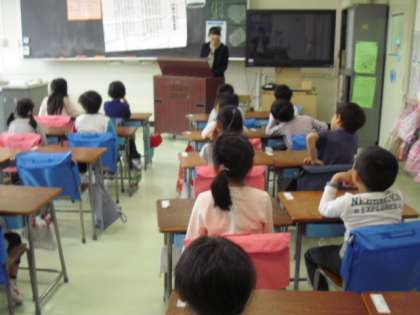教室から、千歳小の校歌が聞こえてきました。