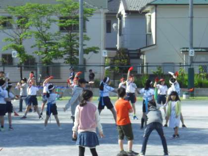 子どもたちも、応援団の練習を見ながら、活動開始です〜