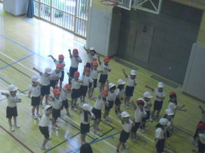 体育館で1年生が表現の練習をしていました。