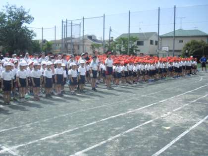 今日は天気も回復し、校庭で運動会の全校練習をしました。