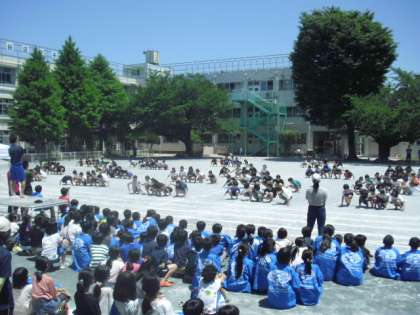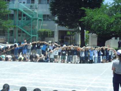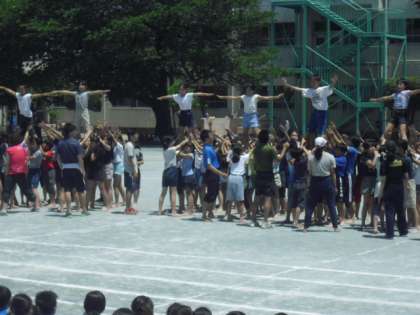 6年生の「新組体操」のリハーサルでは、リハーサルを終えた5年生が正面から演技を見ました。