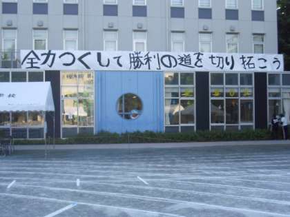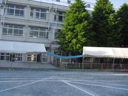 暑さ対策に、近隣の学校からテントをお借りしました。