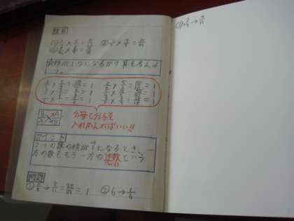 算数の習熟度別指導で、逆数の意味を理解する学習でした。