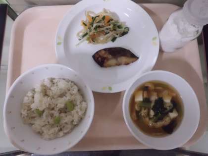 枝豆ごはん・牛乳・さわらの西京焼き・もやしのごま風味・みそ汁