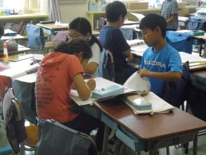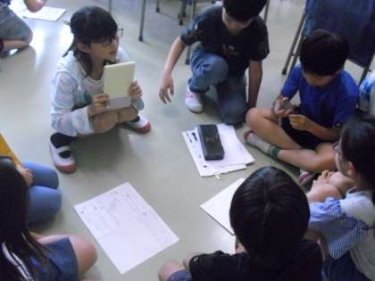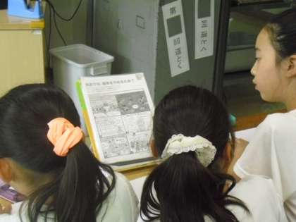 グループで話し合いながら調べ学習が進んでいます。