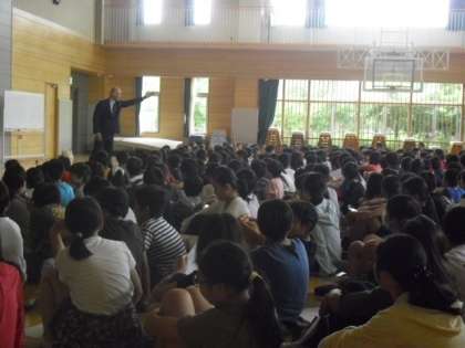 元100m平泳ぎ日本記録保持者の不破央さんをお迎えして、実体験をもとにした夢・未来に向けてのご講話をしていただきました。
