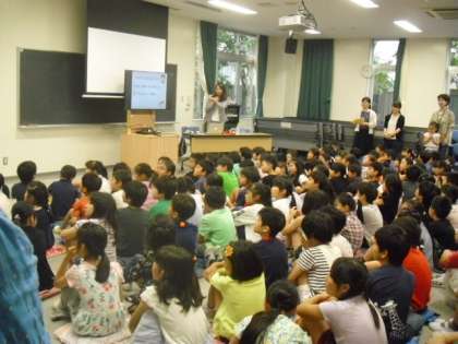 多目的室では、アテネオリンピック銀メダリスト シンクロナイズドスイミング 元日本代表 の塚田(藤丸)真世さんをお迎えして、シンクロナイズドスイミングの世界についてのご講演をいただきました。