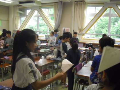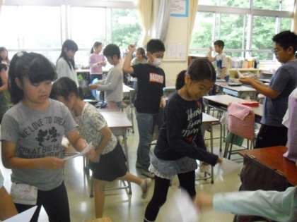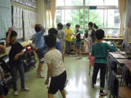 紙鉄砲の「パン、パ〜ン」という勢いのある音が出るように、子どもたちが頑張って活動していました〜