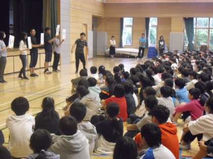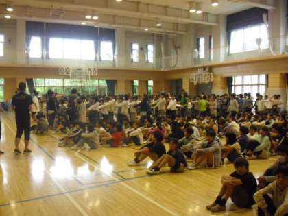 不審者を確保したあと、安全確認をするため、子どもたちを体育館に集めました。