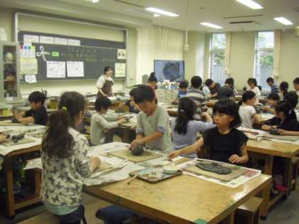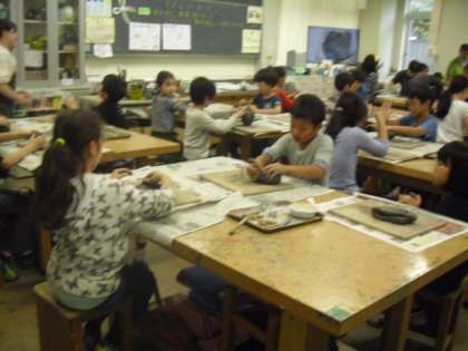 音楽に合わせ、粘土をこね、リズムに合わせてつまんだり、ひねり出したり・・・・・