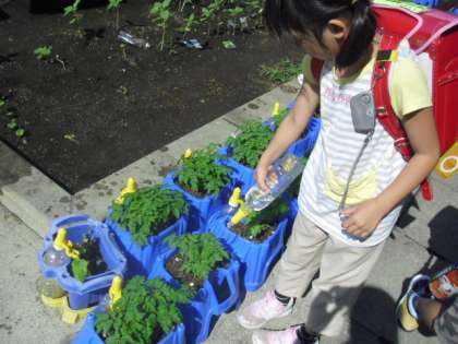 2年生が種から育てているミニトマトの苗も育ってきました。