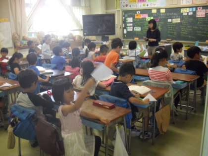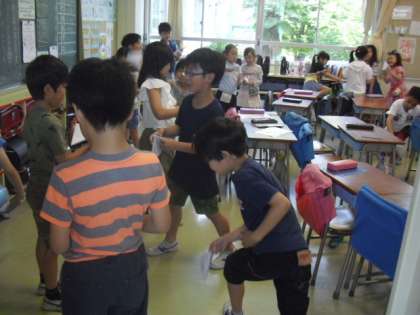 先生に紙鉄砲の作り方を教わって、みんなで紙鉄砲を鳴らす活動に取り組みました。