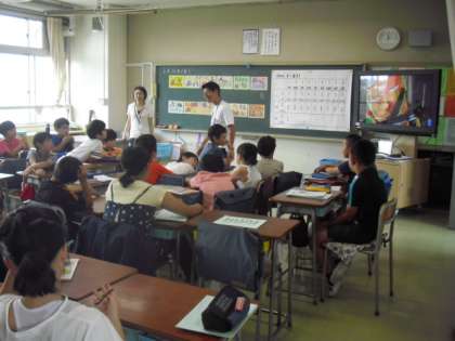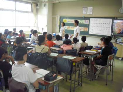 担任の先生と英語支援員さんと一緒に外国語活動〜