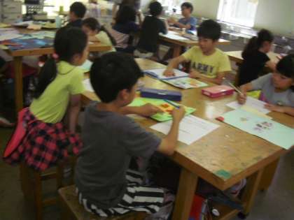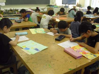 図工の友だちの作品を見合って、鑑賞の学習です。