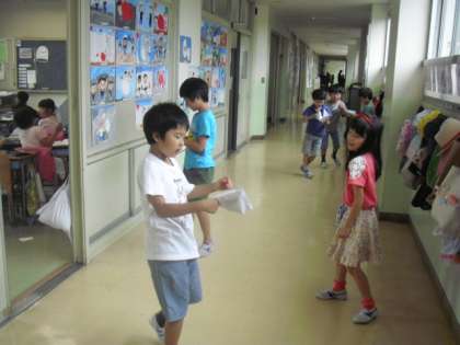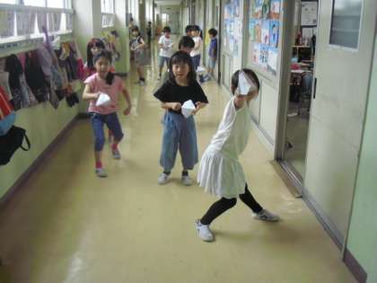 2年生は、投力アップに向けて、紙鉄砲プロジェクトにチャレンジ中です。
