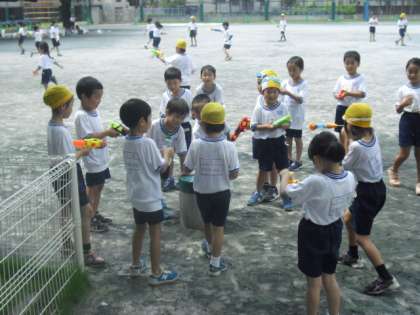 活動を見つめていたら水鉄砲の先がこちらに向いてきましたよ〜